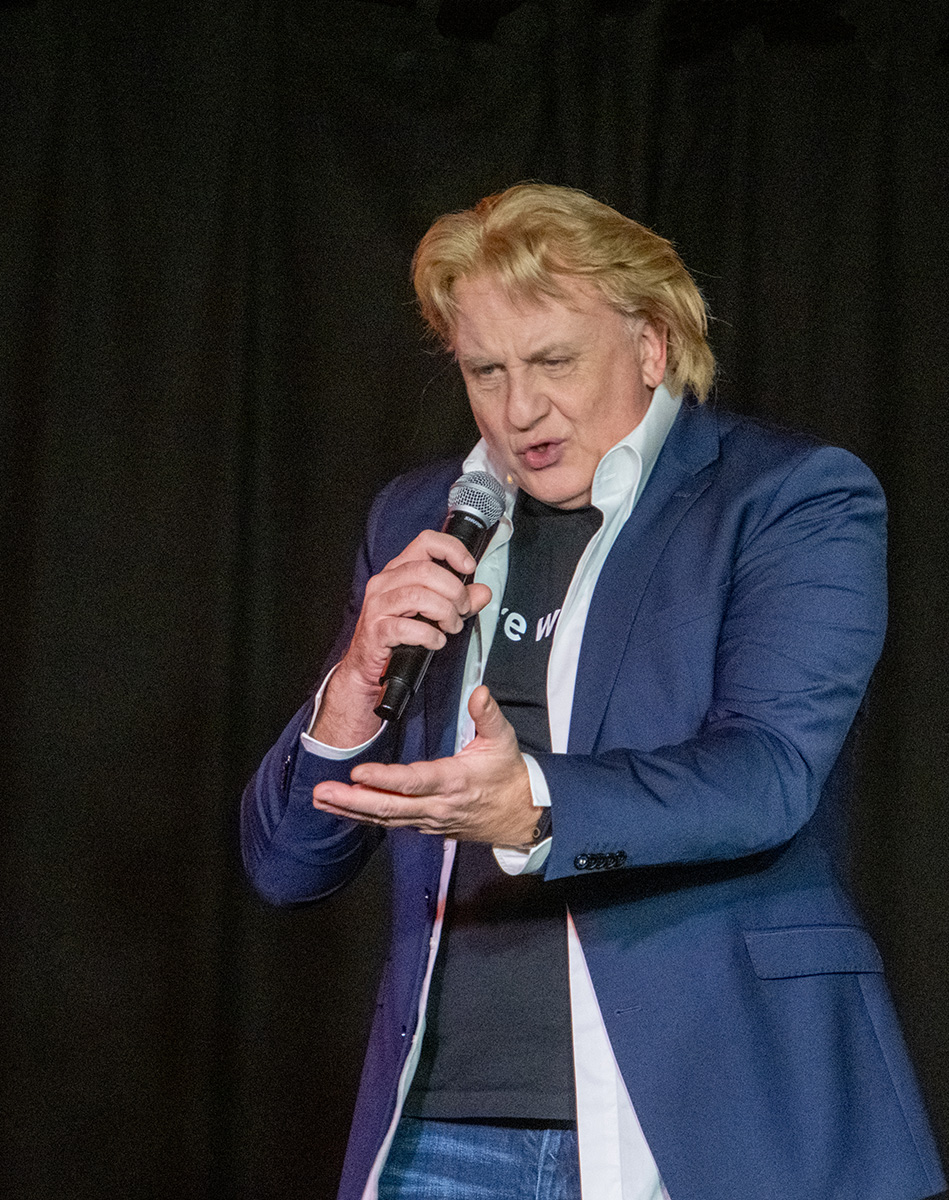 Engelhardt, der bei der Wanderung durchs Publikum viele aus der WhatsApp-Gruppe 2024 wiedererkannte: „Es macht Freude, die Leute glücklich zu machen. Du kriegst was zurück! Das Stück hat sich verfeinert, es wird präziser. Aber es macht uns immer wieder aufs Neue Spaß – wie heute. Das ist vielleicht der Zauber des Abends.“ und strahlte bei dem Feedback aus dem Saal: „Dann ist der Auftrag, ein bisschen Freude ins Leben zu bringen erfüllt worden.“
